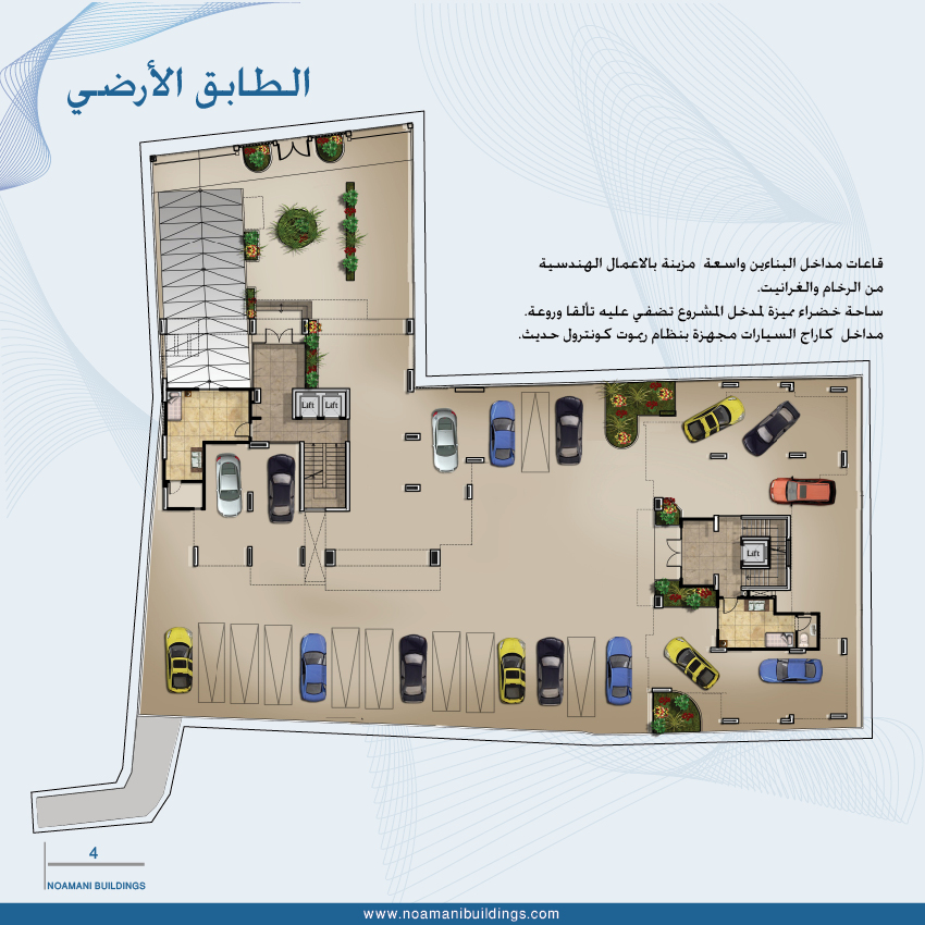 - Three fully equipped Mitsubishi elevators with special laminated cabinets
