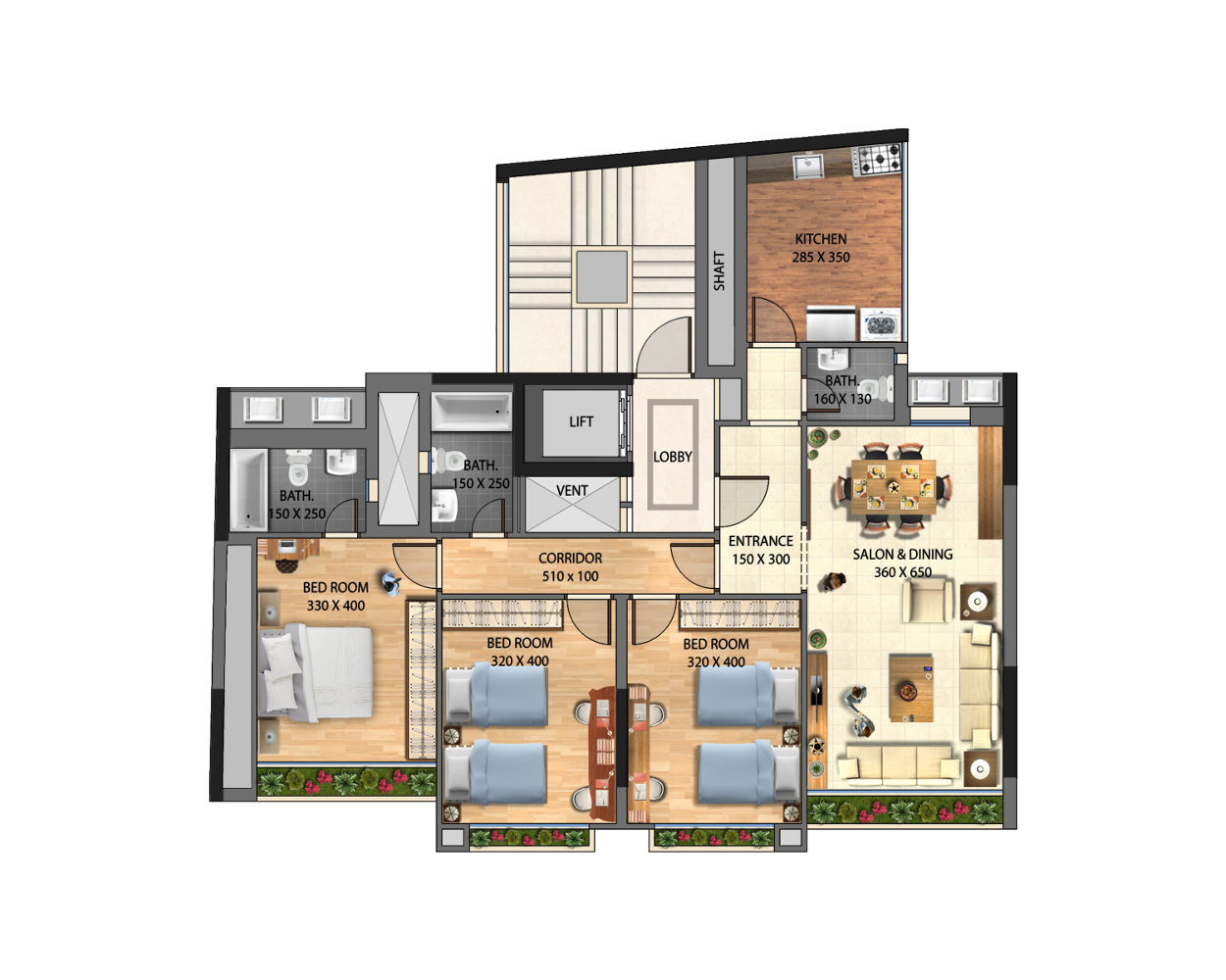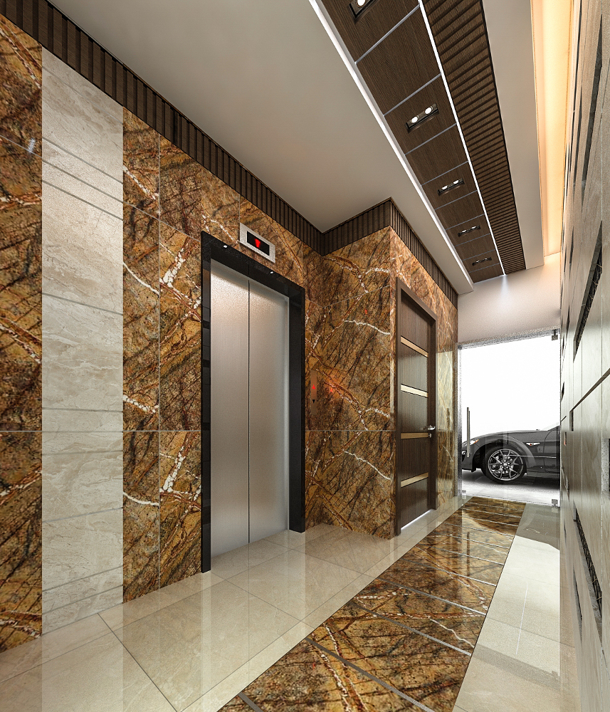 - Elegant main entrance decorations with marble and granite dressing, and decorative gypsum ceiling